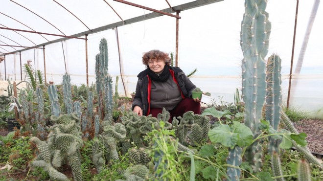 9 ülkeden getirdiği kaktüs türlerini Develi Köyü’ndeki serasında yetiştiren Hörü Mutlu, evinden serasına giderken yolunun üstündeki köpekleri de besliyor.