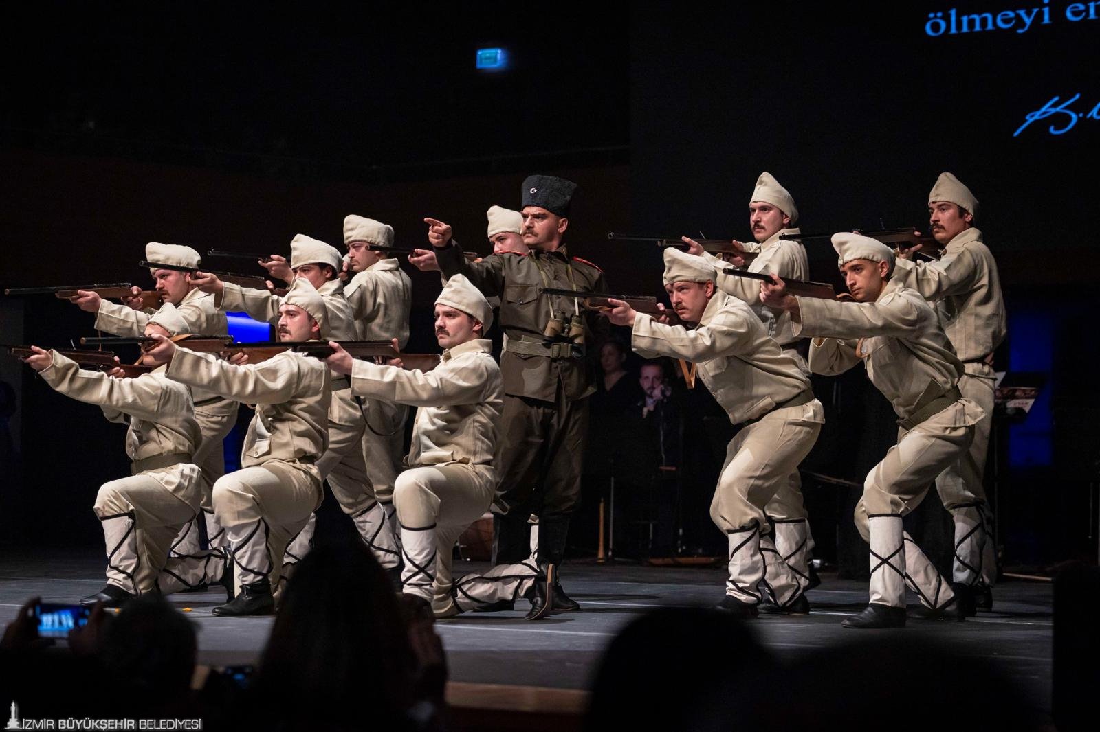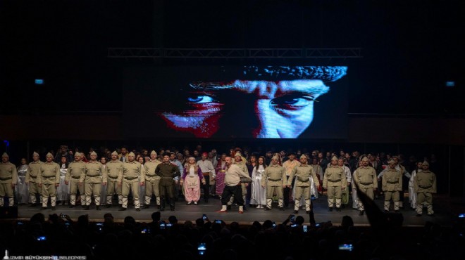 İzmir Büyükşehir Belediyesi’nin 18 Mart Çanakkale Zaferi ve Şehitleri Anma Günü kapsamında hazırladığı “Uyan Memet” dans ve müzikal anlatısı, Ahmed Adnan Saygun Sanat Merkezi’nde (AASSM) izleyiciyle buluştu. Gösteriyi İzmir Büyükşehir Belediye Başkanı Dr. Cemil Tugay ile eşi Öznur Tugay da sanatseverlerle birlikte izledi. Balkan Savaşları’nın yorgunluğunu yaşayan bir halkın, Çanakkale siperlerinde sergilediği direniş ve kahramanlık üzerinden bir ulusun yeniden ayağa kalkışını konu alan eser, sahne diliyle izleyicilere duygusal anlar yaşattı. İzmir Büyükşehir Belediyesi Türk Halk Müziği Korosu, anlatının duygusal zeminini oluşturan ağıt ve kahramanlık türkülerini seslendirirken, Türk Halk Oyunları Topluluğu ise tarihsel süreci sahneye taşıdı.
