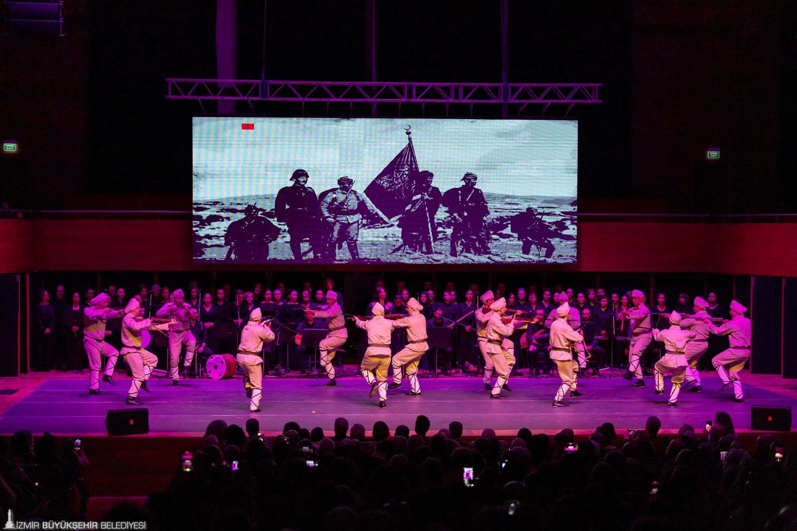 Sanat yönetmenliğini İzmir Büyükşehir Belediyesi Kültür Sanat Koordinatörü Ahmet Diker’in üstlendiği eserin yaklaşık 200 kişilik dev kadrosu 69 dansçı, 68 kişilik koro, 9 kişilik saz ekibi ve sahne arkası çalışanlarından oluştu. Hazırlık sürecinde ekipler, Büyükşehir Belediyesi’ne ait alanlarda antrenörler eşliğinde çalışmalarını sürdürdü. Program finalinde salonu dolduran kalabalık, ellerindeki Türk bayraklarıyla İzmir Marşını hep bir ağızdan söyledi.