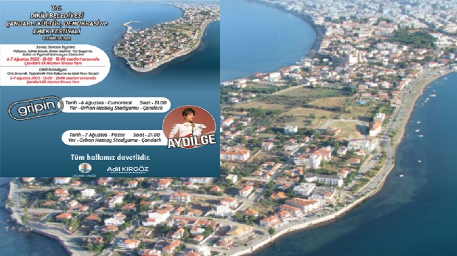 Ağustos ayına yoğun etkinlik programlarıyla giren Dikili Belediyesi, ilk etapta 6-7 Ağustos tarihlerinde Çandarlı Kültür, Demokrasi ve Emek Festivali’ni düzenleyecek. Dikili Belediye Başkanı Adil Kırgöz, tüm vatandaşları hafta sonu Çandarlı’ya davet etti.