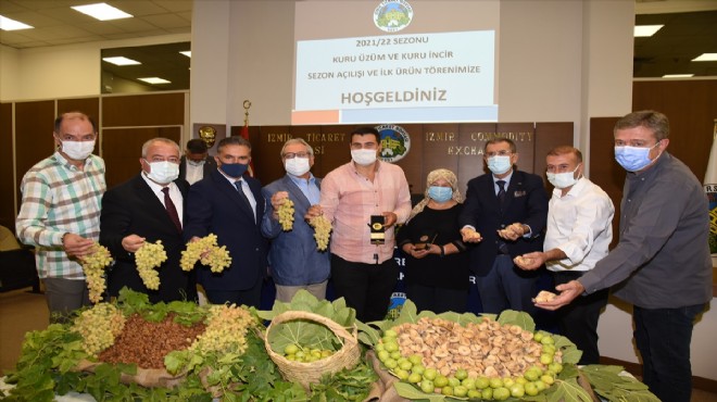 İlk çekirdeksiz kuru üzümü getiren Manisa'nın Alaşehir ilçesinden üretici Muhammet Yaşar ve ilk kuru inciri getiren Aydın'ın Nazilli ilçesinden üretici Fadime Akdemir'in ürünleri, Borsa ve Ege İhracatçılar Birliği (EİB) tarafından verilen sembolik fiyatlarla satın alındı.