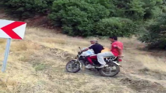 Jandarma çalıntı kaydı bulunan motosikletteki şüphelilerin L.G. ile oğlu A.G. olduğunu saptadı. Baba - oğul yakalanarak gözaltına alınırken, çalınan incirler sahibine teslim edildi. Motosiklet de yediemin otoparkına götürüldü.