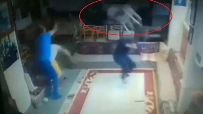 Güvenlik kameralarına yansıyan olayda Ahmet Ozan K., içeride oturanların üzerine sandalye fırlattı, bir kadını da kesici aletle yaralayarak kaçtı.