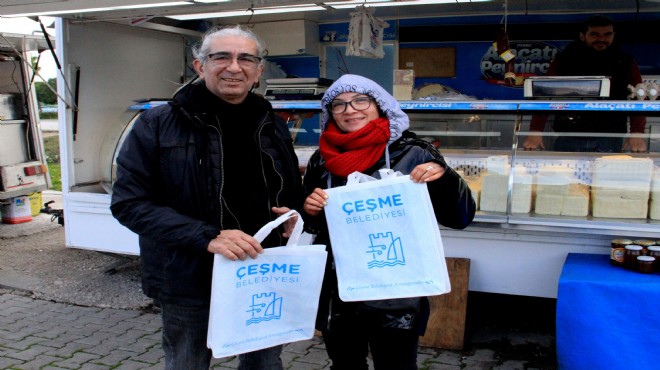 Çeşme Belediyesi'nin yaptırdığı bez alışveriş torbalarının dağıtımına Ilıca Pazarı'nda başlandı. Alışveriş torbalarının, Çeşme'deki diğer pazarlarda da vatandaşlara dağıtılacağı açıklandı.
