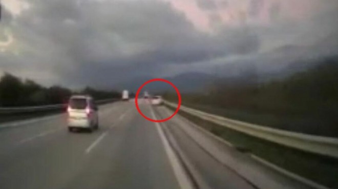 İzmir-Çeşme Otoyolu'nda şarampole devrilen otomobilin sürücüsü Umut K. (27) yaralandı. Kaza, bir başka aracın kamerasına yansıdı.