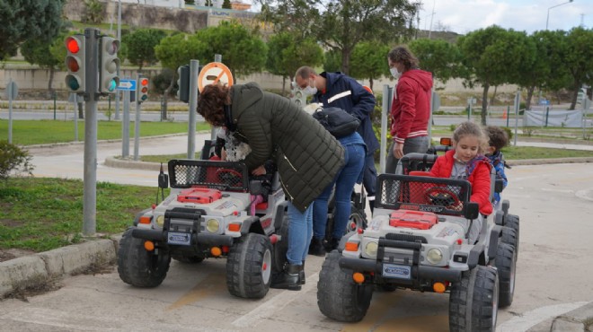 Uygulamalı eğitim için özel hazırlanan akülü arabalara ve bisikletlere binmenin heyecanını yaşayan öğrenciler, trafik ışıkları ve yaya geçitleri hakkında bilgilendirildi.