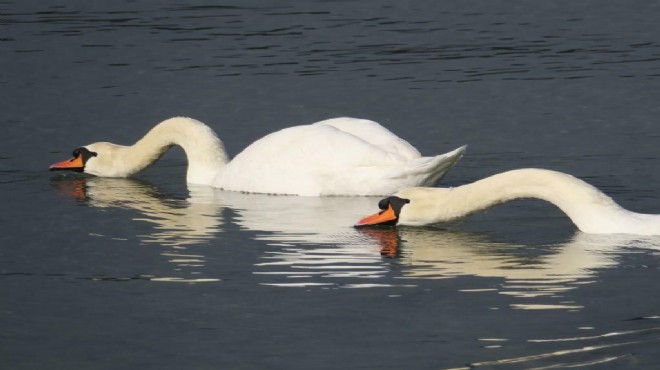 Çeşme'nin Şifne Mahallesi, Mercankoy'da dün gece, mahalleli bir çift kuğu gördü. Bölgede ilk kez görülen kuğular ilgi odağı oldu. Balıkçılar ve mahalle sakinleri kuğuları yiyecek vererek besledi. Suda, adeta süzülerek, ahenkli bir şekilde yüzen kuğuları izleyen mahalle sakinleri, keyifli anlar yaşadı.