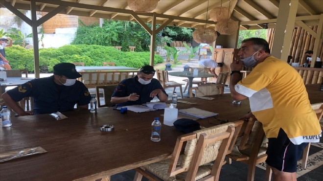 İzmir'in Çeşme ilçesinde yeni tip koronavirüs (Kovid-19) tedbirleri kapsamında ekiplerin denetimleri sürüyor.