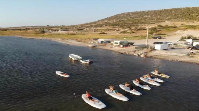 Yoga eğitmenliği yapan Görkem Şahin ve Meral Meriç, ABD'deki yoga eğitmenlerinden örnek alarak, Türkiye'de yoga sevenlerle deniz üzerinde yoga (supboard) ve yer çekimsiz (antigravity) yoga yaptırıyor. Her pazar gün batımında, Alaçatı'daki sörf okulunun önünde, denizde sörf tahtalarının üzerinde birkaç grupla yoga yapan eğitmenler, doğa ile iç içe ortamda rahatlıyor. 7 kişilik gruplar halinde sörf tahtalarının üzerinde denge kurarak, yoga hareketlerinin yapıldığı derslere katılanlar, huzur bulduklarını söylüyor. Aynı zamanda hamak üzerinde yapılan yer çekimsiz yogayı da deneyen eğitmenler, her yerde yoga yapmanın mümkün olduğunu söylüyor.