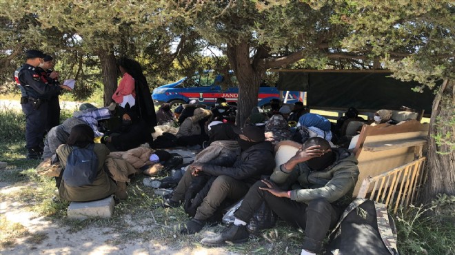 İzmir'in Çeşme ilçesinde yasa dışı yollarla yurt dışına geçiş hazırlığındaki 35 düzensiz göçmen yakalandı.