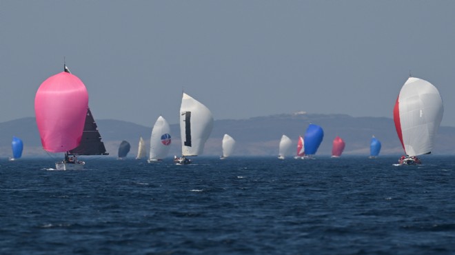 Aralarında Bulgaristan ve Rusya'dan da ekiplerin yer aldığı katılımcılar, 23 Ağustos "Dünya Rüzgar Gibi Esme Günü'nde Çeşme açıklarında yarıştı.