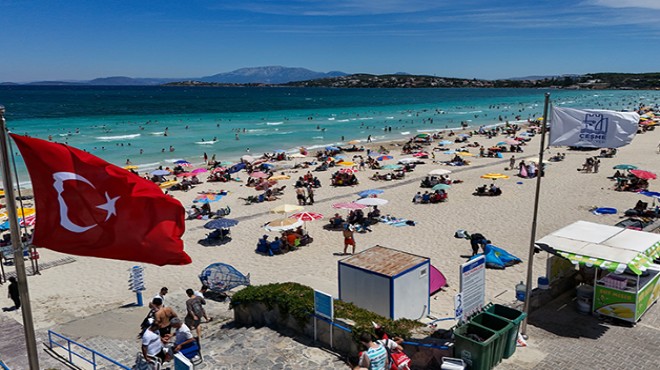 Sıcaklığın 30 dereceyi aştığı turizm merkezinde yaklaşık bin 200 metre uzunluğundaki ünlü Ilıca Plajı'na gelenler yer bulmakta zorlandı.