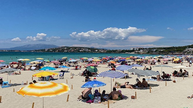 Dünyaca ünlü Ilıca Plajı, sıcaktan bunalanlarla doldu. Bazı kişiler, denize girerken, bazıları da güneşlenmeyi tercih etti. Çeşme Belediyesi de geçen yıl uygulamaya geçirdiği 'sosyal mesafe' alanlarını sene de hazırladı. Belediye ekipleri, Covid-19 nedeniyle düzenleme yaparak, sahile çaktıkları kazıklarla 1,5 metre arayla 6 metrekarelik sosyal mesafe alanları oluşturdu.