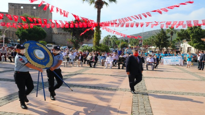 Düzenlenen törene Çeşme Kaymakamı Ünal Çakıcı, Çeşme Belediye Başkanı M. Ekrem Oran, Çeşme Cumhuriyet Başsavcısı Burak Kocaoğlu, İlçe Emniyet Müdürü Gürcan Alev, İlçe Jandarma Komutanı Yarbay Emin Yılmaz, siyasi parti temsilcileri, sivil toplum örgütleri, belediye meclis üyeleri ve vatandaşlar katıldı. Törene İzmir Büyükşehir Belediyesi bandosu çaldığı marşlarla eşlik etti.