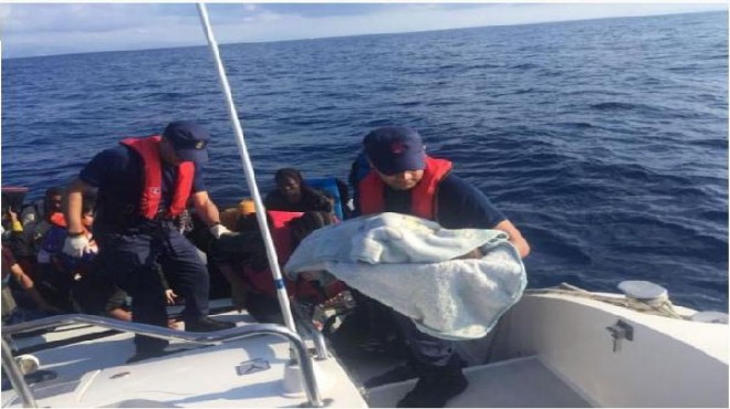 Aynı gün saat 08.30 sıralarında ise Seferihisar'da, Sığacık Körfezi açıklarında bir lastik bot belirleyen sahil güvenlik ekipleri, bölgeye gitti. Durdurulan lastik botta 12'si Suriye, 11'i Kongo, 6'sı Irak, 4'ü Afganistan, 3'ü Yemen, 2'si Pakistan, 2'si Nepal, 1'i Eritre, 1'i Somali ve 1'i İran uyruklu olmak üzere toplam 43 kaçak yakalandı. 15'i kadın, 7'si çocuk toplam 43 kaçak da kıyıya getirildi.