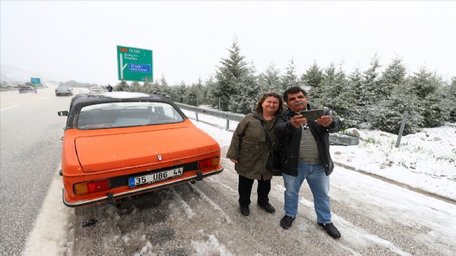 Zeliha Özdemir, AA muhabirine, Buca ilçesinde yaşadıklarını, Çeşme'ye kar olduğunu görüp geldiklerini söyledi.