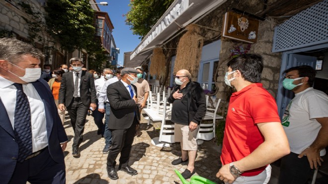 İzmir Büyükşehir Belediye Başkanı Tunç Soyer, her yıl yerli ve yabancı binlerce turisti ağırlayan Çeşme'de, koronavirüs salgınıyla mücadele kapsamında uzun bir sürenin ardından yeniden hizmet vermeye başlayan esnafı ziyaret ederek hayırlı işler diledi. Bir buçuk yılı aşkın bir süredir yaşanan krizin herkesi canından bezdirdiğini ifade eden Soyer, “Ciddi bir yoksullaşma, ciddi bir işsizlik var. Dün alınan kararla ilk defa normalleşmeye doğru bir adım atılmış oldu. Dilerim bu adımın devamı gelir. Hayatımızın tam anlamıyla normale döneceği günleri birlikte yaşarız. Ama bugün ilk kez bu normalleşmenin başlamasıyla, kafe ve restoranların açılmasıyla beraber değerli başkanımla Alaçatı’da esnafımıza iyi sezonlar dilemek, iyi dileklerimizi paylaşmak için ziyaretlerine geldik. Onlara moral vermek, onların iyi bir sezon geçirmesi için elimizden gelen ne varsa yapmaya devam edeceğimizi söylemek istiyoruz” dedi.