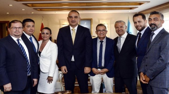 Çeşme Turistik Otelciler ve İşletmeciler Birliği (ÇEŞTOB) Başkanı Yakup Demir, Alaçatı Turizm Derneği Başkanı Korkut Denizeri, ÇEŞTOB Başkan yardımcıları Gökçe Kesikçiler Buğday ve Orhan Belge, ÇEŞTOB Yönetim Kurulu üyeleri Mustafa Eryaman, Halil Yeni ve Fehmi Mert Gönül, geçen çarşamba günü, Turizm Bakanı Mehmet Ersoy'u makamında ziyaret etti. Bakan Ersoy'a yeni görevinde başarılar dileyen turizmciler, istek ve sorunlarını detaylı olarak anlatan bir kitapçık verdi. Turizmciler, 'Turizm İşletme Belgeli' tesislerin tek Bakanlık üzerinden denetlenmesi yönündeki taleplerini de iletti. Turizmciler, turizm bölgelerindeki altyapı sorununun devlet tarafından takip edilmesini ve desteklenmesini istedi. Turizmciler, yaz sezonu öncesinde Alaçatı Turizm Derneği ve dernek üyesi işletmelerin '75 desibel deklarasyonu' hakkında da bilgi verdi. Bakan Ersoy, konudan haberdar olduğunu belirterek, bu konudaki taleplerini proje haline getirip sunmalarını istedi. Ersoy, projede otel ve restoranlar kadar gece kulüplerinin de menfaatini koruyarak ortak karar alınması konusunun altını çizdi. Ziyaret sırasında Bakan Ersoy'a, Alaçatı köy içi için korumacı turizm projesi de anlatılarak, Alaçatı'nın yaşam kültürüne, tarihine, lezzetlerine ve değerlerine sahip çıkan, yerel üretici ve yerel esnafı destekleyen, İşletme karması ve alan yönetimi hakkındaki düşünceler aktarıldı.