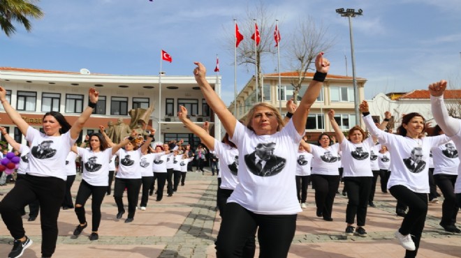 Etkinliğin son bölümünde Çeşme Belediyesi tarafından Sarı Zeybek Dans ve Sahne Sanatları Derneği destekleriyle sahne alan Çeşmeli kadınlar Atatürk tişörtleri giyerek coşkuyla zeybek oynadı. Vatandaşlar tarafından büyük alkış alan kadınlar gösteri sonunda mor balonları gökyüzüne uçurdu.