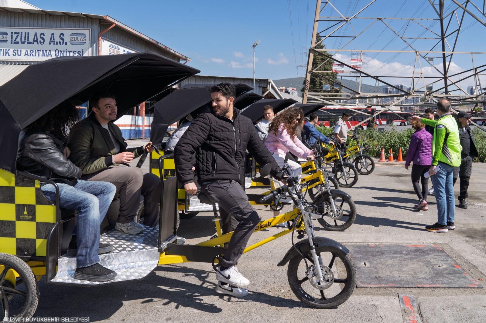 İzmir Büyükşehir Belediyesi, kent içi ulaşımda çevreci dönüşümü destekleyen ve gençlere nitelikli iş imkânı sunan “Bisicab” projesini hayata geçiriyor. Elektrik destekli üç tekerlekli bisikletlerden oluşan sistemi devreye almaya hazırlanan Büyükşehir, karbon salımını azaltmayı hedeflerken üniversite öğrencilerine eğitimli ve donanımlı bir çalışma alanı da oluşturuyor. Gelecek günlerde yola çıkması planlanan Bisicab araçlarını kullanacak üniversite öğrencilerine yönelik eğitimler de başladı. Bisicab ile sürüş eğitimi alan gençler, İzmir’de ilk kez hayata geçirilecek böyle bir çalışmanın içerisinde yer almaktan dolayı heyecanlı olduklarını söyledi.