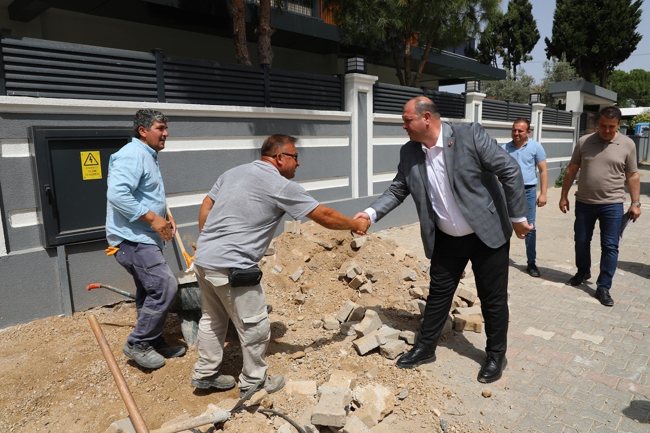 Menderes Belediye Başkanı İlkay Çiçek, sahaya inerek fen işleri müdürlüğü ile park ve bahçeler müdürlüğünün çalışmalarını yerinde inceledi. İlgili müdürlerden yapılan ve planlanan çalışmalar ile ilgili tek tek bilgi alan Başkan Çiçek, işçilerle de bir araya geldi.