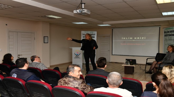İklim Değişikliği ve Sıfır Atık Müdürlüğü tarafından düzenlenen etkinlikte, iklim değişikliğinin küresel boyutları, bireysel ve toplumsal etkileri, çözüm yolları ve alınabilecek önlemler detaylı bir şekilde ele alındı. Prof. Dr. Madran, konuşmasında iklim krizinin artık sadece çevresel değil, aynı zamanda ekonomik, sosyal ve politik bir sorun haline geldiğine dikkat çekti. Ayrıca, yerel yönetimlerin ve bireylerin bu konuda oynadığı rollerin önemini vurguladı. Madran, Çiğli İklim Eylem Planı’na değinerek planın eylemlerinin stratejik plana aktarılmış olmasının ve hayata geçirilmek üzere çalışmalar yapılmasının mutluluk verici olduğunu belirtti. Eğitime Çiğli Belediyesi Başkan Yardımcısı Başar Özmen, müdürler ve çok sayıda personel katıldı.