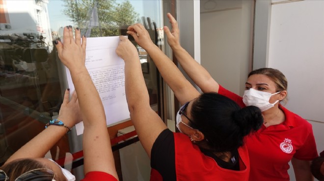 Çiğli Belediyesi önünde toplanan ÇİBEL işçileri sloganlar attı.