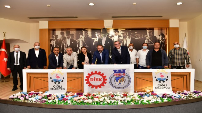 Çiğli Belediyesi’nin kadrolu işçilerini ilgilendiren TİS, Çiğli Belediye Başkanı Utku Gümrükçü, Genel-İş Sendikası Genel Sekreteri Şükret Sevgener, DİSK Ege Bölge Temsilcisi Memiş Sarı, Genel-İş Sendikası 8 Nolu Şube Başkanı Deniz Şahin Gümüştekin tarafından belediye meclis salonunda düzenlenen törenle imzalandı.  Sözleşmeye göre kadrolu işçilerin ücretlerinde yüzde 14 oranında artış sağlandı.