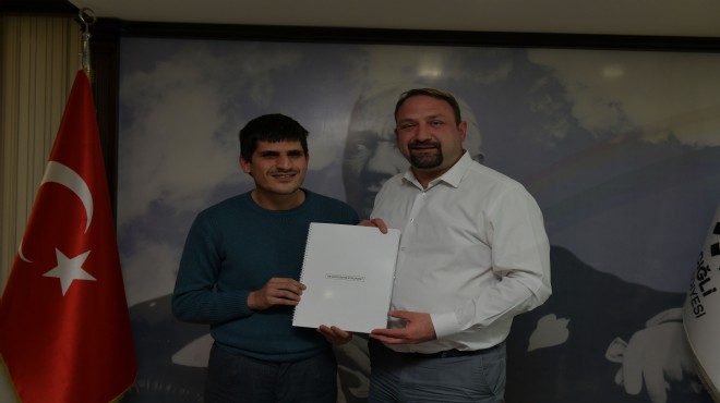 Engelli hakları aktivisti Yusuf Ak, hazırladığı mönüleri makamında ziyaret ettiği Çiğli Belediye Başkanı Utku Gümrükçü'ye teslim etti. Belediyeye hazırladığı menü ile katkı sunulduğu için mutluluğunu dile getiren Başkan Gümrükçü ise Ak’a kabartma yazı ile hazırlanan teşekkür belgesini imzalayarak verdi. Başkan Gümrükçü teşekkür belgesini imzalarken; “Yusuf benim yazdığımı okuyamıyor, ben de onun Braille alfabesiyle yazdığını okuyamıyorum. İkimiz de engelleniyoruz. Aramızdaki iletişimin gelişmesi için engelleri ortadan kaldırmamız gerekiyor" dedi.