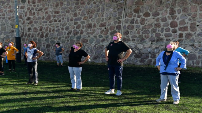 Çiğli Belediyesi tarafından Meme Kanseri Farkındalık Ayı kapsamında meme kanserine dikkat çekmek amacıyla, Güzeltepe Spor Tesislerinde plates yapan kadınlar bu kez pembe maskelerini takarak spor yaptı. Çiğli Belediye Başkanı Utku Gümrükçü de pembe maske takarak katıldığı spor etkinliğinde “Farkındalık mücadelesinde kadınlarımızın yanındayız” dedi.