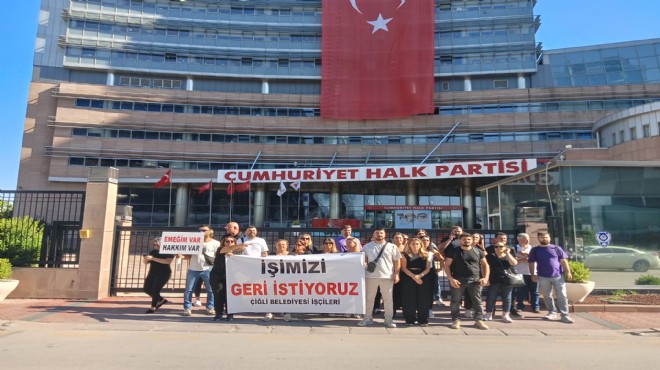 GERÇEKİZMİR-Çiğli Belediyesi’nde işten çıkarılan 147 işçiden yeni bir hamle geldi. Bir süredir Çiğli Belediye binası önünde eylem yapan bir grup işçi bu kez CHP Genel Merkezi önüne gitti.
