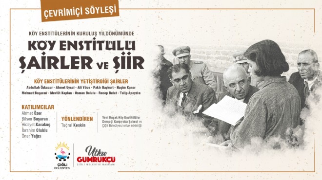 ?Çiğli Belediyesi ile Yeni Kuşak Köy Enstitüler Derneği Karşıyaka şubesi, Köy Enstitülerinin 81. kuruluş yıl dönümü doğrultusunda “Köy Enstitülü Şairler ve Şiir” konulu bir etkinlik düzenledi. Tuğrul Keskin’in moderatörlüğünü yaptığı etkinliğe yazar Ahmet Özer ve Öner Yağcı ile şair Bilsen Başaran, Hidayet Karakuş ve İbrahim Oluklu katılım gösterdi. Köy Enstitülerinin kuruluşu, müfredatı ve faaliyetlerinin konuşulduğu etkinlikte bir ilk gerçekleştirilerek bu okullardan yetişen Abdullah Özçukur, Ahmet Uysal, Ali Yüce, Fakir Baykurt, Haşim Kanar, Mehmet Başaran, Mevlüt Kaplan, Osman Bolulu, Recep Bulut ve Talip Apaydın gibi birbirinden değerli şairlerin yazdığı şiirler okundu. Pandemi şartları nedeniyle online olarak gerçekleştirilen etkinlik, Çiğli Belediyesi ve Başkan Utku Gümrükçü’nün sosyal medya hesaplarından canlı olarak yayınlandı.