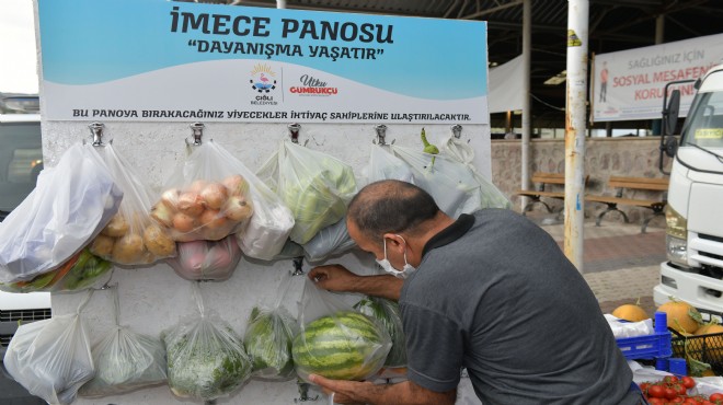 Çiğli Belediyesi tarafından, Covid-19 salgınının toplum üzerinde meydana getirdiği ekonomik sıkıntıları azaltmak amacıyla başlatılan “Dayanışma yaşatır” projesi kapsamında ilçe genelindeki pazar yerlerine vatandaşların sebze meyve ihtiyaçlarını giderebilecekleri imece panoları kuruldu.