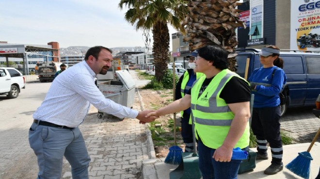 Başkan Utku Gümrükçü temizlik çalışmalarını yerinde incelemek için belediye ekipleri ile beraber sahaya indi. İncelemeler sırasında vatandaşlara bizzat bilgi veren Gümrükçü, çalışmaların kısa süre içerisinde bitirileceğini belirtti.
