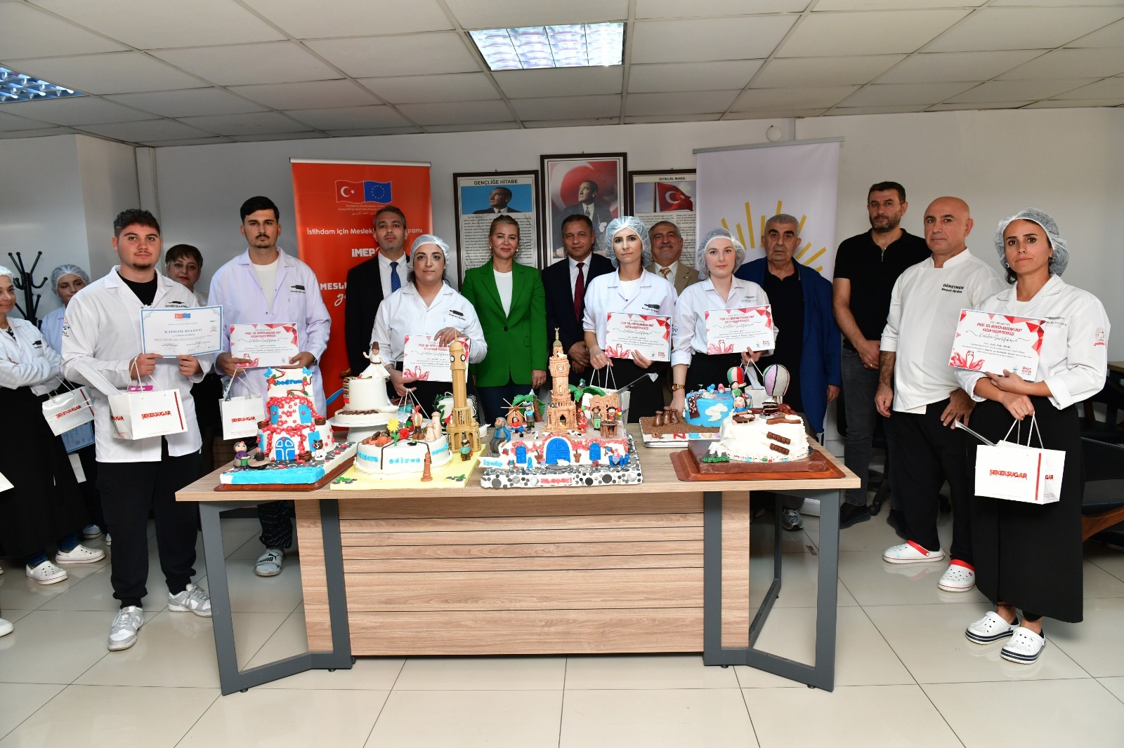 İstihdam garantili pastacılık kurslarında eğitim alan 40 kursiyer sertifikalarını aldı ve 24’ü işe yerleşirken, 2’si de kendi işletmesini kurma yolunda ilerliyor.