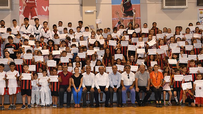 Çiğli Atatürk Spor Salonu’nda düzenlenen törende kursları tamamlayan taekwondoda 300, voleybolda 160 ve basketbolda ise 150 sporcuya başarı belgelerini Çiğli Belediye Başkanı Hasan Arslan verdi. Bayraklarla donatılan tören alanında yapılan taekwondo gösterileri büyük alkış topladı. Genç sporcuların mini voleybol ve basketbol maçları da ilgiyle izlendi.