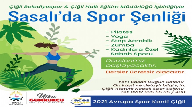?İki yıl içerisinde hayata geçirilen alt yapı yatırımları ve gelecek planlamalarıyla Avrupa’nın en prestijli oluşumlarından biri olan Avrupa Spor Kentleri Federasyonu’nun düzenlediği organizasyonda “2021 Avrupa Spor Kenti” unvanına layık görülen Çiğli’de, kadın ve özel gereksinimli çocukları spor yapmaya teşvik etmek amacıyla önemli bir uygulamaya imza atıldı. Çiğli Belediyesi ile Çiğli Halk Eğitim Müdürlüğü iş birliğinde, kent merkezine uzak konumda bulunan Sasalı ve Kaklıç Mahallelerinde ikamet eden kadınlar için Pilates, Yoga, Zumba ve Step Aerobik kursları başlatıldı. Kurslara katılmak isteyen vatandaşlar 0232 935 55 35 numaralı hattan kayıt yaptırabilecekler.