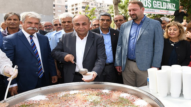 Muharrem ayı nedeniyle Çiğli Belediye Başkanı Hasan Arslan, Çiğli halkının da yoğun katılımıyla Kasaplar Meydanı ve Çiğli Belediyesi binası önünde aşure dağıttı.