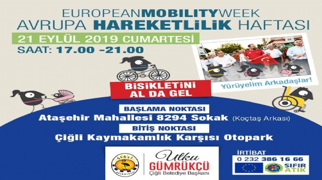 Günün ilerleyen saatlerinde ise bisiklet severler, “Avrupa Hareketlilik Haftası” kapsamında Ataşehir Mahallesi’nde toplanacak. Saat 17.00’de başlayacak bisiklet etkinliği Çiğli Kaymakamlık binası önüne sona erecek.