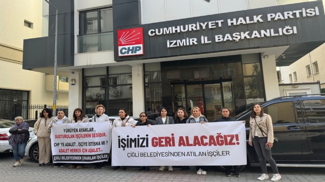 Çiğli Belediyesinde çalışırken 10 Haziran 2024'te işten çıkarılan ve zaman zaman eylem yapan işçiler, CHP İl Başkanlığı önünde toplandı.