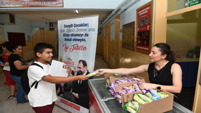 Çocukların en sevdiği yiyeceklerin başında dondurma olmasından dolayı öğrencilere böyle bir karne sürprizi yapmak istediklerini belirten Başkan Utku Gümrükçü, “Tüm öğrencilerimize güzel bir yaz tatili diliyorum. Bol bol okusunlar, dinlensinler, eğlensinler. Geleceğimiz onlara emanet ve bizler de öğrencilerimiz için önemli çalışmalarla onların yanında olacağız. Bugün de onlara hoş bir sürpriz yaptık ve dondurma dağıttık” diye konuştu.