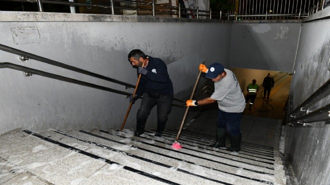Vatandaşlara en iyi hizmeti sunmayı amaçladıklarını kaydeden Başkan Yıldız, “Çiğli’de bulunan üst geçitleri, asansörleri ve yaya alt geçitlerini temizlik personelimiz ile her pazar akşamı temizliyoruz. İlçemizde yaşayan vatandaşlarımıza en iyi hizmeti vermeyi amaçlıyoruz. Öte yandan ilçemizde birçok noktada gerekli olan asfalt yama, kosa, kilit parke döşeme çalışmaları da aralıksız sürüyor. Bu çalışmalarımız daha da artarak devam edecek. Çiğlimizin tamamı pırıl pırıl olacak” ifadelerini kullandı.