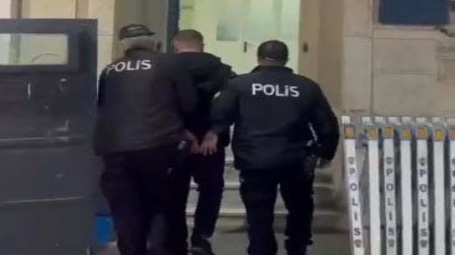 Karşıyaka İlçe Emniyet Müdürlüğü Devriye Ekipler Amirliği ekipleri, Karşıyaka ilçesi Tuna Mahallesi'nde rutin kimlik kontrolü sırasında bir kişiden şüphelendi. İzmir Banliyö Sistemi (İZBAN) Karşıyaka istasyonu önünde durdurulan şüphelinin kimlik kontrolünde 'kasten öldürme' suçundan Mersin'de 25 yıl hapis cezası ile aranan Rıdvan K. olduğu belirlendi. Gözaltına alınan Rıdvan K., işlemleri için emniyete götürüldü. (DHA)