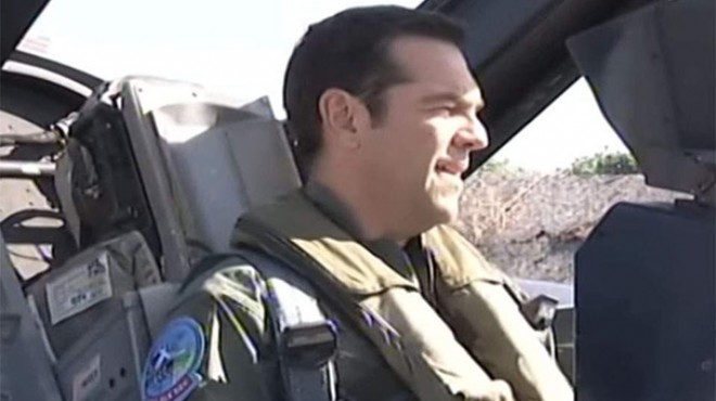 Sabah saatlerinde Larisa Hava Kuvvetleri Karargâhı’nı ziyaret eden Yunanistan Başbakanı Aleksis Çipras, özel uçuş kıyafeti giyerek F16 Block 52+ uçağına bindi ve 3 savaş uçağı eşliğinde Kuzey Ege üzerinde uçuş yaptı.
