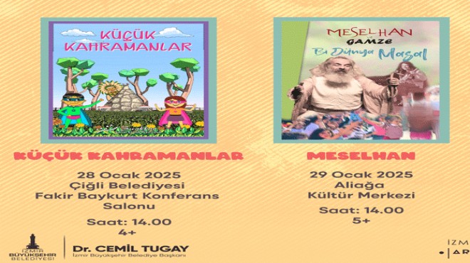 18 Ocak günü Bergama Kültür Merkezi’nde 4 yaş üzeri çocuklar için Mutluluk Ormanı, 19 Ocak günü Tire Kültür Merkezi’nde 7 yaş üzeri çocuklar için Masal Sandığı, 20 Ocak günü Kemalpaşa Belediyesi Mesire Alanı Atatürk Düğün Salonu’nda ve 21 Ocak günü Bornova Belediyesi Altındağ AKM Yıldız Kenter Sahnesi’nde 4-10 yaş arası çocuklar için Masal Karnavalı, 22 Ocak günü Kiraz Belediyesi Düğün Salonu’nda ve 23 Ocak günü Beydağ Kültür Merkezi’nde 4-9 yaş arası çocuklar için Mucit Palyaço, 25 Ocak günü Kınık Mustafa Kemal İlkokulu’nda 3 yaş üzeri çocuklar için Dört Mevsim Bir Kuş, 26 Ocak günü Foça Belediyesi Reha Midilli Kültür Merkezi’nde 7 yaş üzeri çocuklar için Masal Sandığı, 28 Ocak günü Çiğli Belediyesi Fakir Baykurt Konferans Salonu’nda 4 yaş üzeri çocuklar için Küçük Kahramanlar, 29 Ocak günü Aliağa Kültür Merkezi’nde 5 yaş üzeri çocuklar için Meselhan ve Gamze Bi Dünya Masal, 30 Ocak günü Gaziemir Belediyesi Atatürk Kültür Merkezi’nde 5 yaş üzeri çocuklar için Meselhan ve Gamze Bi Dünya Masal, 2 Şubat günü Ödemiş Kültür Merkezi’nde 3 yaş üzeri çocuklar için Dört Mevsim Bir Kuş tiyatro oyunları ücretsiz olarak sahnelenecek. Tüm oyunlar saat 14.00’te başlayacak.