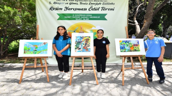 İzmir Büyükşehir Belediyesi’nin 5 Haziran Dünya Çevre Günü etkinlikleri kapsamında bu yıl 5’incisini düzenlediği "Rüzgâr ve Güneş Temiz Enerji ile Bütünleş" konulu resim yarışmasının ödül töreni İsmet İnönü Kültür Merkezi’nde yapıldı. 29 okuldan 122 eserin katıldığı yarışmada ilk üçe giren Gazi Umurbey Ortaokulu 6. sınıf öğrencisi Elif Su Şengül, 80. Yıl Asarlık Ortaokulu 6. sınıf öğrencisi Kübra Küpeli ve Başöğretmen Ortaokulu 7. sınıf öğrencisi Doruk Cem Çeler’e ödülleri verildi.