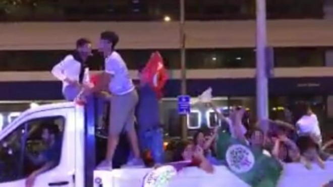 Geçen 24 Haziran gecesi, HDP'nin milletvekilliği seçiminde yüzde 10 barajını aşmasının ardından, bir kamyonetin arkasında kutlama yapan çocuklar, terör örgütü PKK'nın elebaşı Abdullah Öcalan lehine slogan atmış, bu anlara ait görüntüler de sosyal medyada paylaşılmıştı. İzmir Cumhuriyet Başsavcılığı'nın olayla ilgili başlattığı soruşturma kapsamında, İzmir Emniyet Müdürlüğü Terörle Mücadele Şube Müdürlüğü ekipleri, çocukları yönlendirdiği tespit edilen 7 kişiyi gözaltına aldı. Şüpheliler, ifadeleri alınmak üzere Terörle Mücadele Şube Müdürlüğü'ne götürüldü.(DHA)