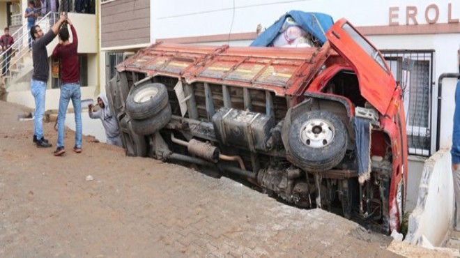 Şanlıurfa'da Ahmet Yesevi Mahallesi'nde ev eşyası yüklenen park halindeki kamyonet, freninin boşalması sonucu hareket etti.