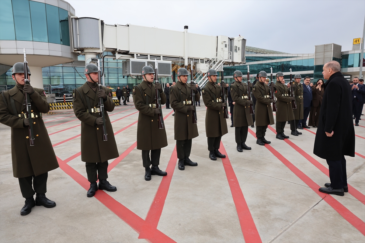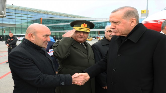 Aydın'da gerçekleştirilecek programa katılmak üzere İzmir'e gelen Cumhurbaşkanı Erdoğan'a eşlik eden İçişleri Bakanı Süleyman Soylu, Milli Eğitim Bakanı Mahmut Özer ve Cumhurbaşkanı Yardımcısı Fuat Oktay'ı İzmir Büyükşehir Belediye Başkanı Tunç Soyer'in de bulunduğu il protokolü ile karşılandı.