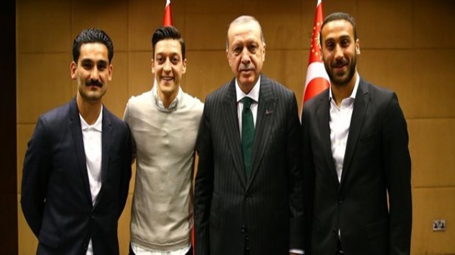Four Seasons Otel'de basına kapalı gerçekleştirilen kabulde, Tosun, Özil ve Gündoğan, Cumhurbaşkanı Erdoğan'a imzalı formalarını hediye etti.